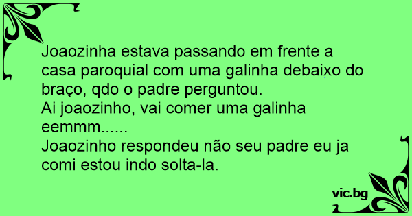 Joaozinha estava passando em frente a casa paroquial com uma gаlinhа debaixo do braço, qdo o padre perguntou.