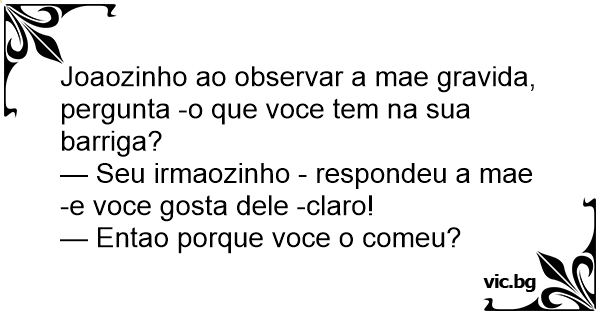 Joaozinho ao observar a mae gravida, pergunta -o que voce tem na sua barriga?