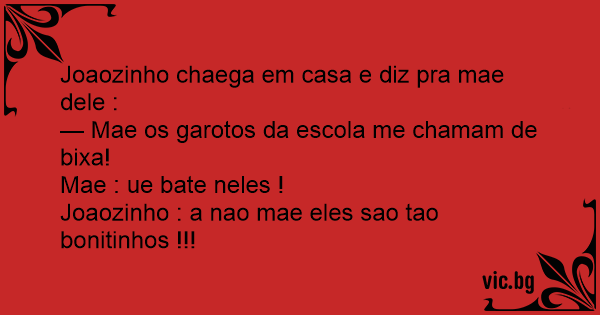 Joaozinho chaega em casa e diz pra mae dele :