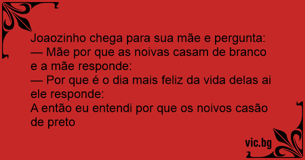 — Mãe por que as noivas casam de branco e a mãe responde: