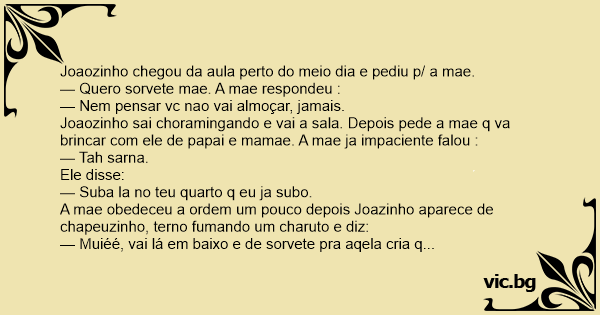 Joaozinho chegou da aula perto do meio dia e pediu p/ a mae.