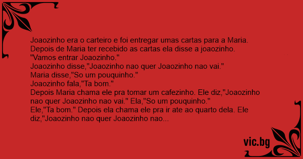 Joaozinho era o carteiro e foi entregar umas cartas para a Maria.