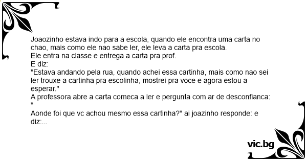 Aonde foi que vc achou mesmo essa cartinha?" ai joazinho responde: e diz: