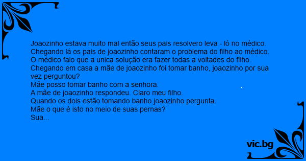 Chegando em casa a mãe de joaozinho foi tomar banho, joaozinho por sua vez perguntou?