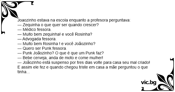 — Joãozinho está suspenso por tres dias volte para casa seu mal criado!