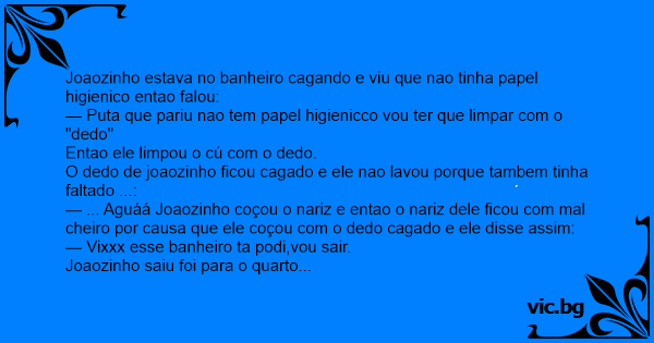 O dedo de joaozinho ficou cagado e ele nao lavou porque tambem tinha faltado ...: