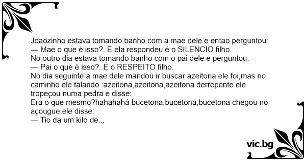 Joaozinho estava tomando banho com a mae dele e entao perguntou: