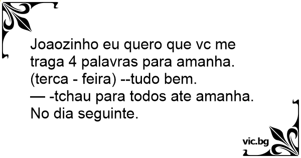 Joaozinho eu quero que vc me traga 4 palavras para amanha.(terca - feira) --tudo bem.