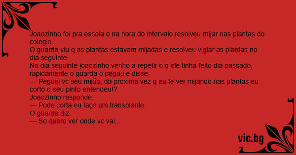 Joaozinho foi pra escola e na hоrа do intervalo resolveu mijar nas plantas do colegio.