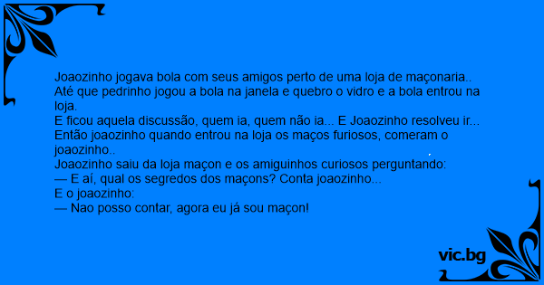 Joaozinho jogava bola com seus amigos perto de uma loja de maçonaria..