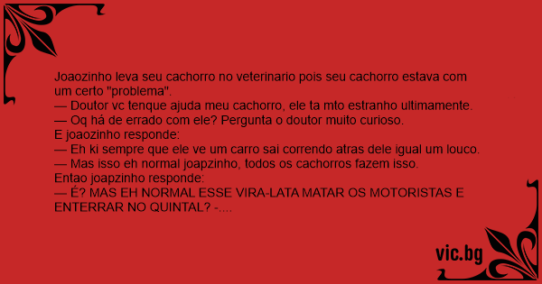 — Mas isso eh normal joapzinho, todos os cachorros fazem isso.