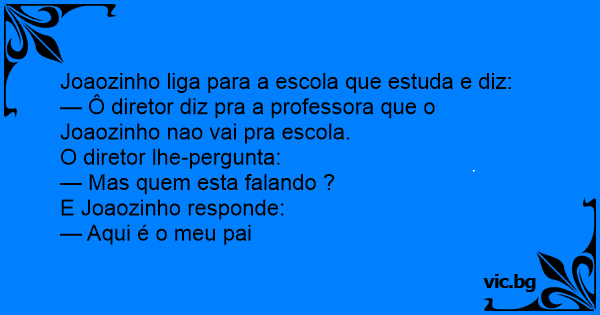 — Ô diretor diz pra a professora que o Joaozinho nao vai pra escola.
