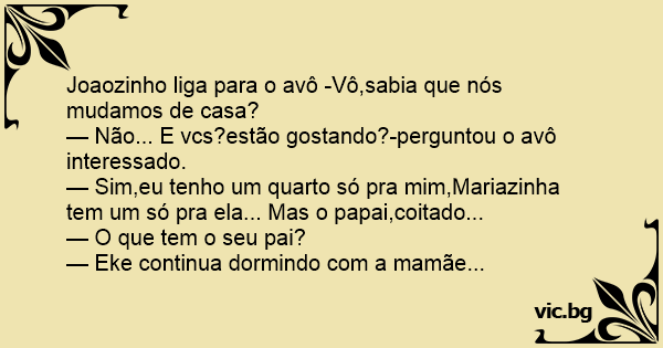 Joaozinho liga para o avô -Vô,sabia que nós mudamos de casa?