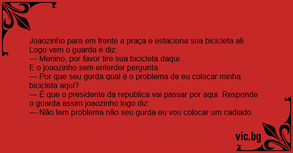 — É que o presidente da republica vai passar por aqui. Responde o guarda assim joaozinho logo diz: