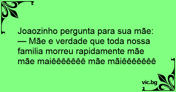 — Mãe e verdade que toda nossa familia morreu rapidamente mãe mãe maiêêêêêêê mãe mãiêêêêêêê