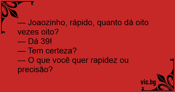— Joaozinho, rápido, quanto dá oito vezes oito?