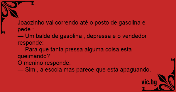 Joaozinho vai correndo até o posto de gasolina e pede :