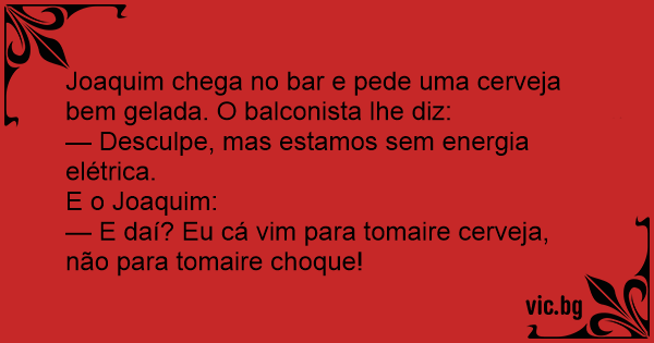 Joaquim chega no bar e pede uma cerveja bem gelada. O balconista lhe diz: