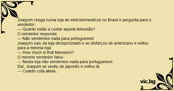 Joaquim chega numa loja de eletrodomesticos no Brasil e pergunta para o vendedor: