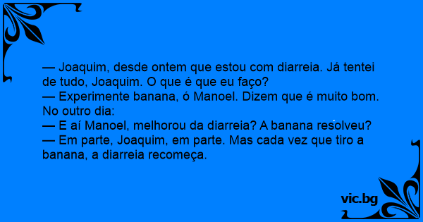 — Em parte, Joaquim, em parte. Mas cada vez que tiro a banana, a diarreia recomeça.