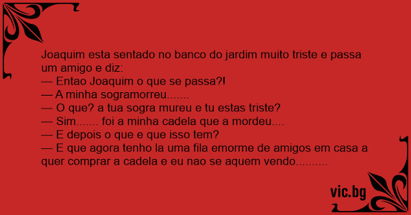 Joaquim esta sentado no banco do jardim muito triste e passa um amigo e diz: