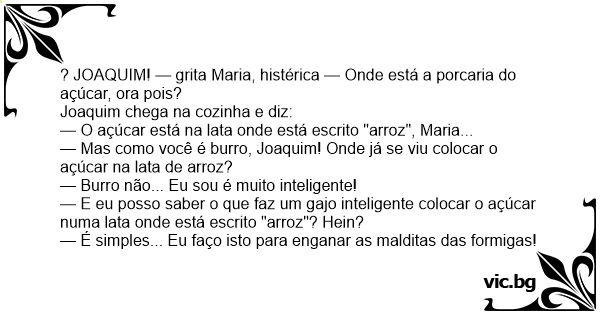 — Mas como você é вurrо, Joaquim! Onde já se viu colocar o açúcar na lata de arroz?