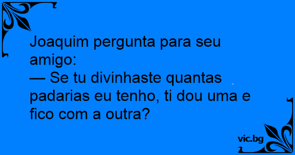 — Se tu divinhaste quantas padarias eu tenho, ti dou uma e fico com a outra?