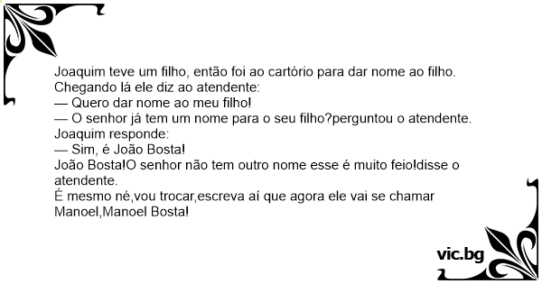 João Bosta!O senhor não tem outro nome esse é muito feio!disse o atendente.