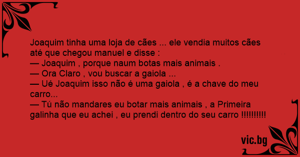 Joaquim tinha uma loja de cães ... ele vendia muitos cães até que chegou manuel e disse :
