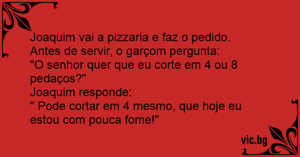 " Pode cortar em 4 mesmo, que hoje eu estou com pouca fome!"