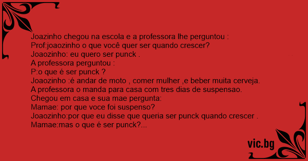 Joaozinho:por que eu disse que queria ser punck quando crescer .