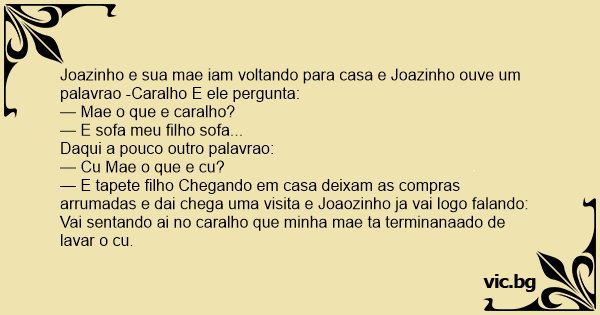 Joazinho e sua mae iam voltando para casa e Joazinho ouve um palavrao -Саrаlhо E ele pergunta: