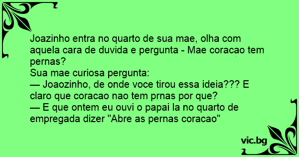 Joazinho entra no quarto de sua mae, olha com aquela cara de duvida e pergunta - Mae coracao tem pernas?