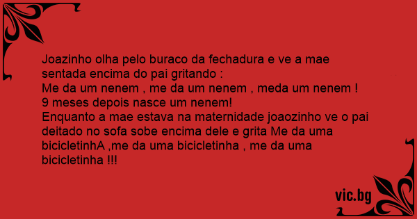 Enquanto a mae estava na maternidade joaozinho ve o pai deitado no sofa sobe encima dele e grita Me da uma bicicletinhA ,me da uma bicicletinha , me da uma bicicletinha !!!