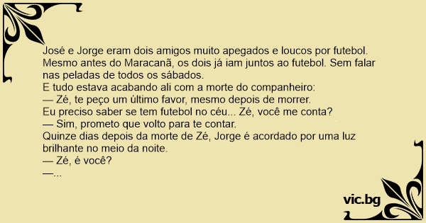 — A boa notícia é que, tem futebol no céu.