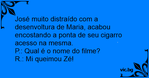 José muito distraído com a desenvoltura de Maria, acabou encostando a ponta de seu cigarro acesso na mesma.
