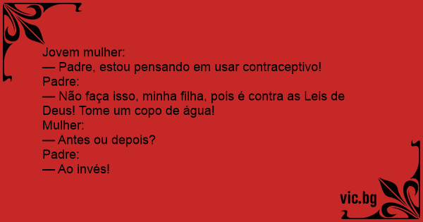 — Não faça isso, minha filha, pois é contra as Leis de Deus! Tome um copo de água!
