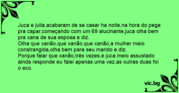 Porque falar que xanão,três vezes,e juca meio assustado ainda responde eu falei apenas uma vez,as outras duas foi o eco.