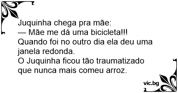 O Juquinha ficou tão traumatizado que nunca mais comeu arroz.