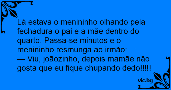 Lá estava o menininho olhando pela fechadura o pai e a mãe dentro do quarto. Passa-se minutos e o menininho resmunga ao irmão: