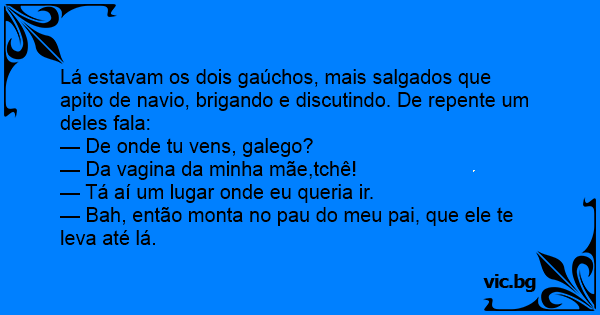 Lá estavam os dois gaúchos, mais salgados que apito de navio, brigando e discutindo. De repente um deles fala: