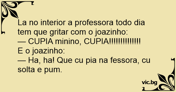 — Ha, ha! Que cu pia na fessora, cu solta e pum.