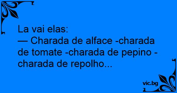 — Charada de alface -charada de tomate -charada de pepino -charada de repolho...