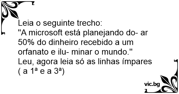 Leu, agora leia só as linhas ímpares ( a 1ª e a 3ª)