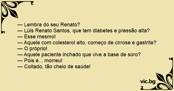 — Lúis Renato Santos, que tem diabetes e pressão alta?