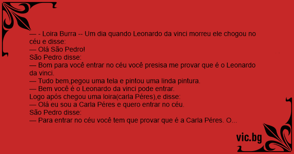 — - Loira Burra -- Um dia quando Leonardo da vinci morreu ele chogou no céu e disse: