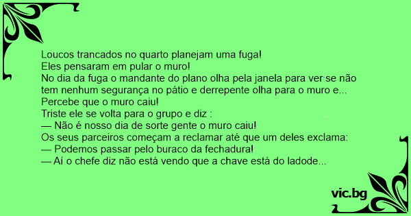 — Aí o chefe diz não está vendo que a chave está do ladode dentro!Isso impossibilita a nossa passada pelo buraco!