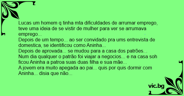 Lucas um homem q tinha mta dificuldades de arrumar emprego, teve uma ideia de se vistir de mulher para ver se arrumava emprego...