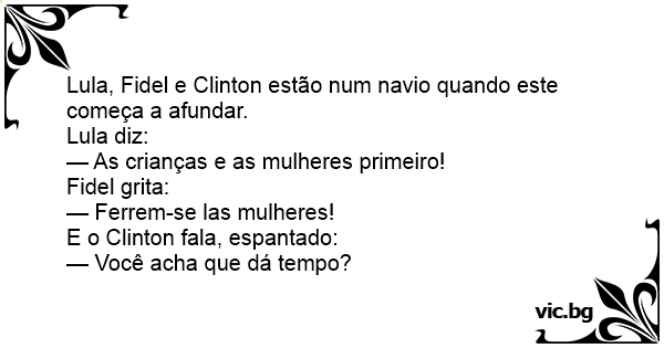 Lula, Fidel e Clinton estão num navio quando este começa a afundar.