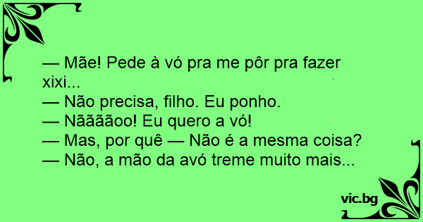 — Mãe! Pede à vó pra me pôr pra fazer xixi...
